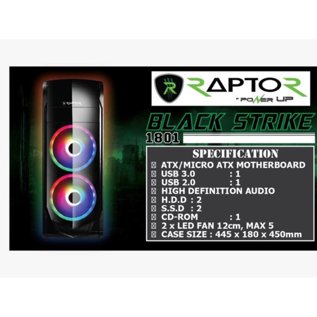 Harga Spesifikasi Paket Casing Gaming Raptor Black Strike 1501 Dan 3 Fan Led Dan Perbandingan Toko Harga Indonesia